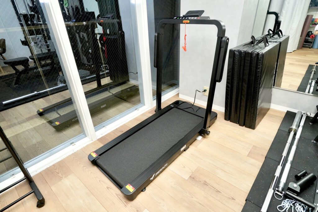 「5in1マルチラック」(スミス・ケーブル・フリーウェイト完備)とランニングマシンを、あなただけで独占。 もうマシンの順番待ちや、他人の視線、騒音といったストレスはありません。 誰にも邪魔されない完全個室で、全身のトレーニングに没頭できます。